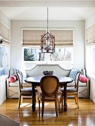 My latest client is in need of a banquette for her seating area...I'm debating between that or a settee- since she only needs it for casual "bar" seating with scattered cocktail tables anchored with zebra print chairs! (classic)